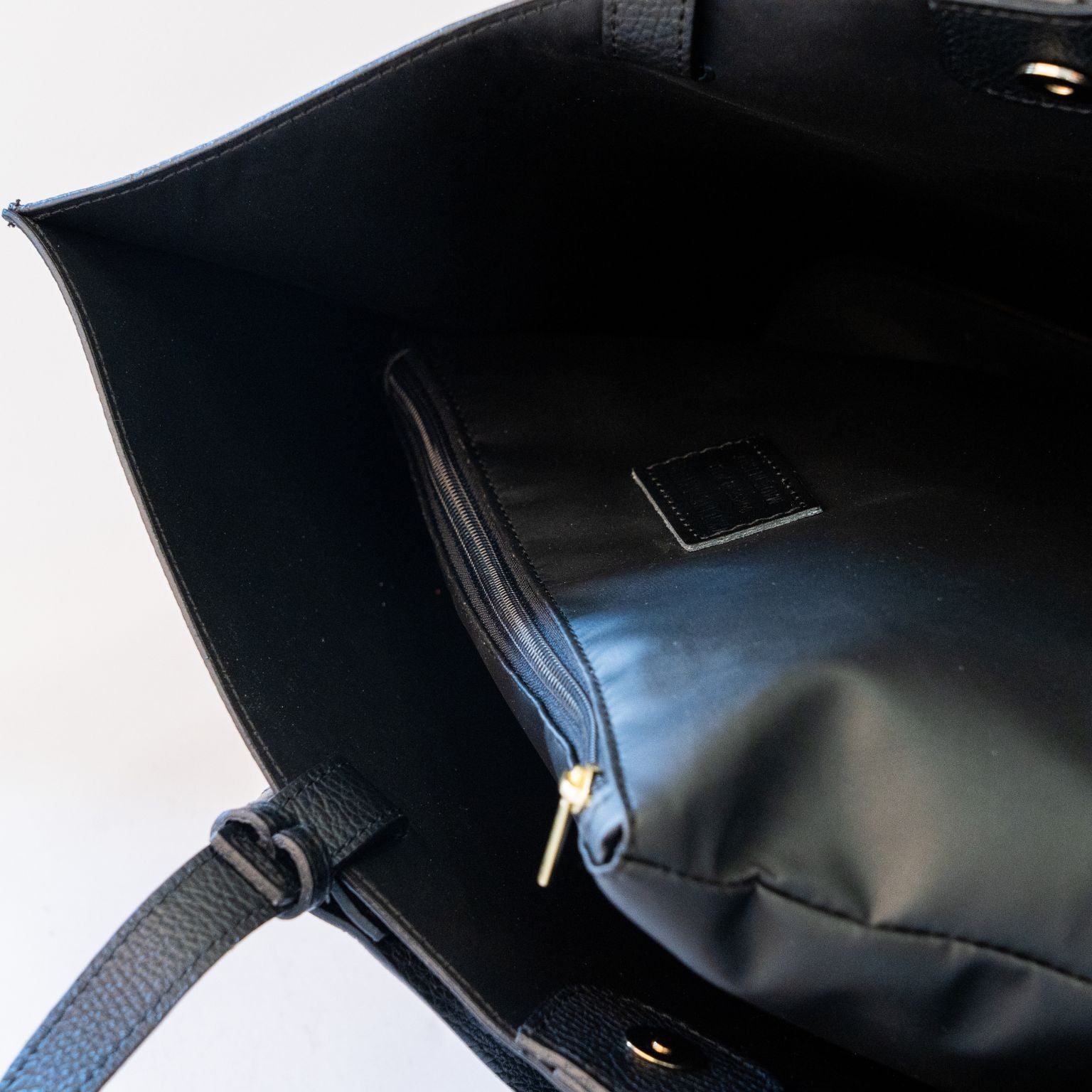 All'interno una comoda sacca rimovibile, chiusa da una zip. Questa sacca ti offre un'organizzazione impeccabile, in modo che tu possa separare gli oggetti essenziali o mantenerli al sicuro in un unico posto. È un'opzione versatile che ti consente di utilizzare la borsa in modi diversi a seconda delle tue necessità.